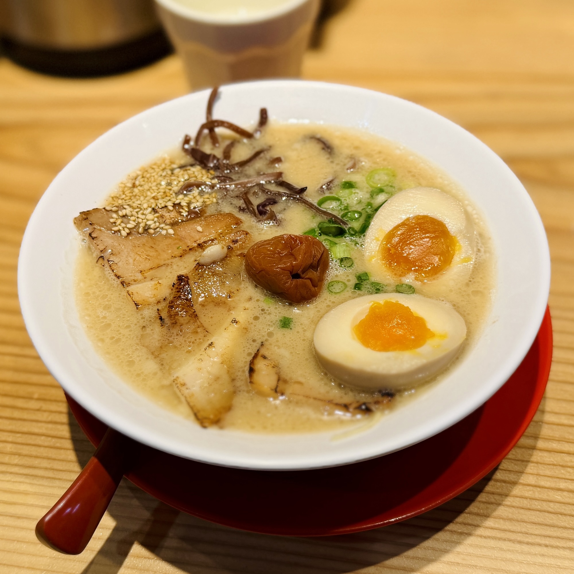 豚骨ラーメンに梅干しという組み合わせは珍しいですが、これが絶妙なアクセントになっていて個人的にはかなり好みでした。