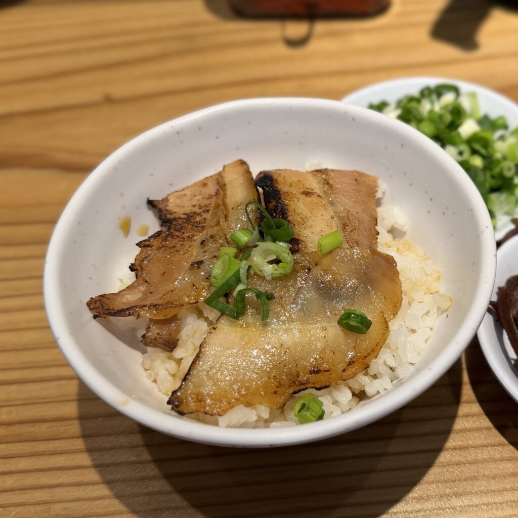 主人の炙りチャーシュー丼も香ばしく、ラーメンのお供にちょうどいいサイズ感でした。